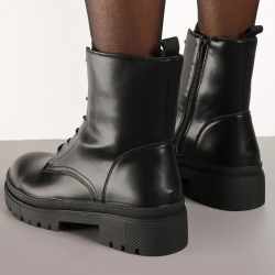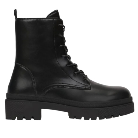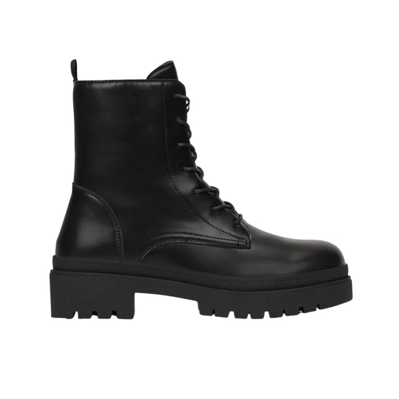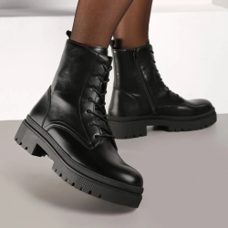 Charakterystyczna traperowa podeszwa to prawdziwy hit sezonu! Nie tylko dodaje butom rockowego pazura, ale także zapewnia doskonałą przyczepność i izolację od podłoża. Stabilny obcas o wysokości 5 cm subtelnie uniesie sylwetkę, jednocześnie gwarantując komfort nawet podczas długich spacerów.