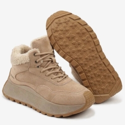 Gruba, bieżnikowana podeszwa zapewnia doskonałą przyczepność na śliskiej nawierzchni, a ocieplenie wewnątrz buta sprawia, że stopa pozostaje ciepła nawet w najchłodniejsze dni. Te zimowe botki to must-have w każdej garderobie, pasują zarówno do casualowych, jak i bardziej sportowych stylizacji.
