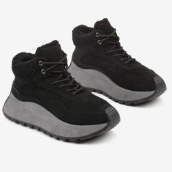 Gruba, bieżnikowana podeszwa zapewnia doskonałą przyczepność na śliskiej nawierzchni, a ocieplenie wewnątrz buta sprawia, że stopa pozostaje ciepła nawet w najchłodniejsze dni. Te zimowe botki to must-have w każdej garderobie, pasują zarówno do casualowych, jak i bardziej sportowych stylizacji.