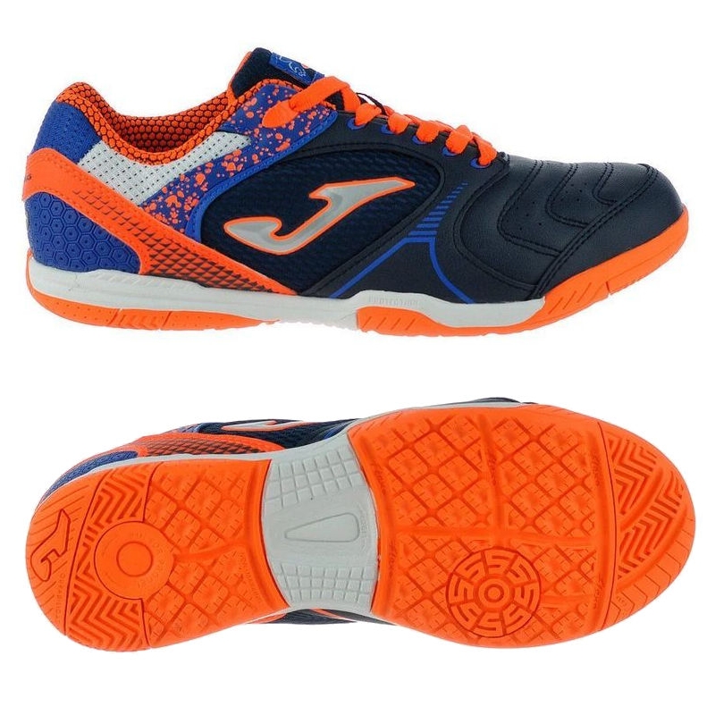 Halówki dziecięce marki Joma z kolekcji Dribbling. Wykonane w części cholewkowej z wysokiej jakości skóry eko oraz niebrudzącej i zapobiegającej poślizgom gumy w podeszwie. Dodatkowo za amortyzację odpowiada warstwa pianki EVA.