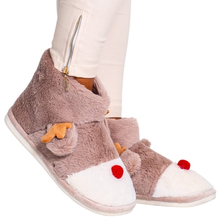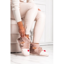 Kapcie Damskie Wysokie YL-136 z Reniferem Różowy