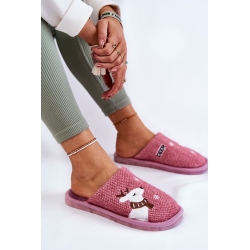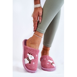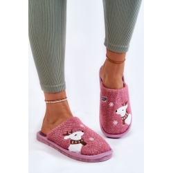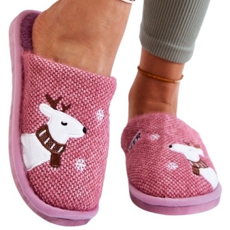 Damskie kapcie domowe z zimowym wzorem. Na zewnętrznej części wyszyto wizerunek renifera oraz płatki śniegu.