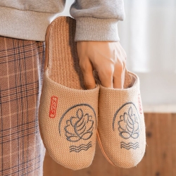 Dodatkowo, cholewka wykonana z lnianej tkaniny została starannie zdobiona, prezentując delikatny wzór lotusa na górnej części.