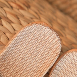 Wkładka tych kapci została wykonana z delikatnej tkaniny lnianej w splatany wzór kratki. Len, doskonały materiał odprowadzający wilgoć, sprawia, że te kapcie doskonale sprawdzają się nawet w czasie upalnych dni, zapewniając świeżość i wygodę stopom.