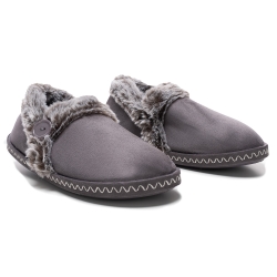 Subtelny guzik dekoracyjny po boku oraz staranne, kontrastowe przeszycia w białym kolorze dodają kapciom unikalnego charakteru, łącząc w sobie modny design z tradycyjną wygodą. Gruba, podeszwa zapewnia stabilność, dzięki czemu te kapcie są nie tylko stylowe, ale również funkcjonalne – idealne do noszenia na wszystkich domowych powierzchniach.