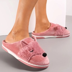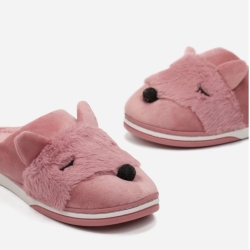 Przód kapci ozdobiony jest futerkową aplikacją, która przypomina pyszczek lisa z subtelnymi, wyhaftowanymi oczkami oraz czarnym, miękkim noskiem, który dodaje całości wyjątkowego uroku. Dodatkowe uszka umieszczone na wierzchu tworzą trójwymiarowy efekt, który przypadnie do gustu każdej miłośniczce nietuzinkowych dodatków.