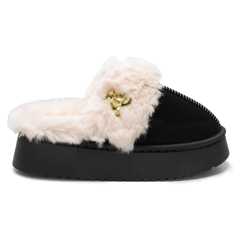 Kapcie Damskie Ocieplane Z Ozdobą Meris Czarne