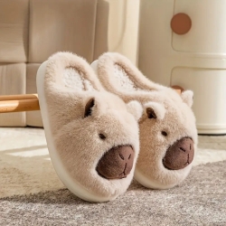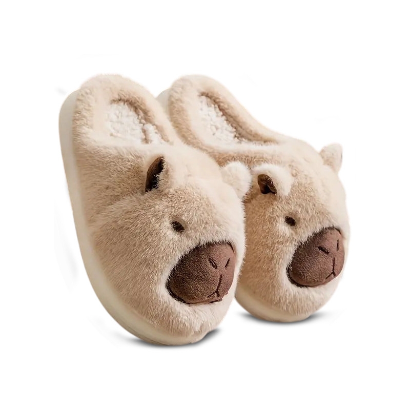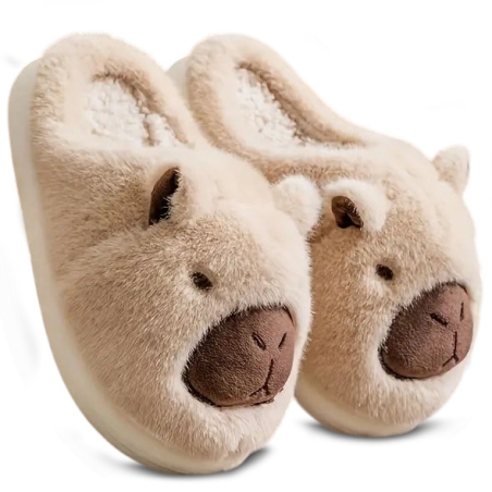 Kapcie Damskie Kapibara Pluszowe Ocieplane Beżowe Kapi
