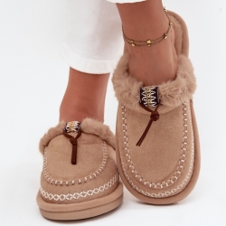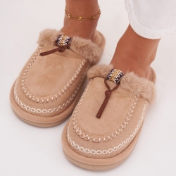 Wnętrze i brzeg wykończone miękkim, jasnym futerkiem, które zapewnia ciepło i niezrównany komfort Twoim stopom.