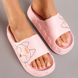 Damskie klapki Cats z pianki z uroczym motywem kotka na boku klepek to doskonały wybór na plażę, basen oraz luźne spacery w ciepłe dni.