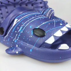 Klapki charakteryzuje się zabawnym i wyjątkowym designem przypominającym rekina. Górna część buta imituje głowę rekina z wyraźnymi detalami, takimi jak oczy, nos i otwarta paszcza z ostrymi zębami.