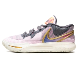 Model DV1194-600 wyróżnia się odważną kolorystyką Pink Foam/Multi-Color, przyciągającą wzrok zarówno na boisku, jak i poza nim. Cholewka wykonana z wysokiej jakości materiałów syntetycznych zapewnia lekkość, trwałość oraz doskonałą wentylację. Multikolorowy, dużych rozmiarów Swoosh Nike z obramowaniem w kolorze złotym zdobi boczną część buta, dodając mu dynamicznego charakteru. Dodatkowe detale, takie jak logo Kyrie na języku oraz pomarańczowe przeszycia na pięcie, podkreślają unikalność projektu.