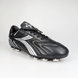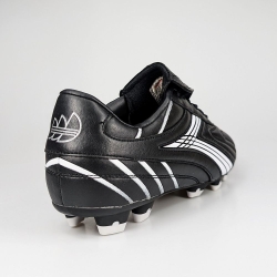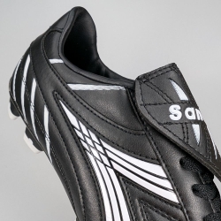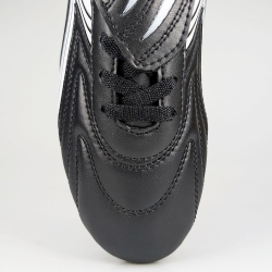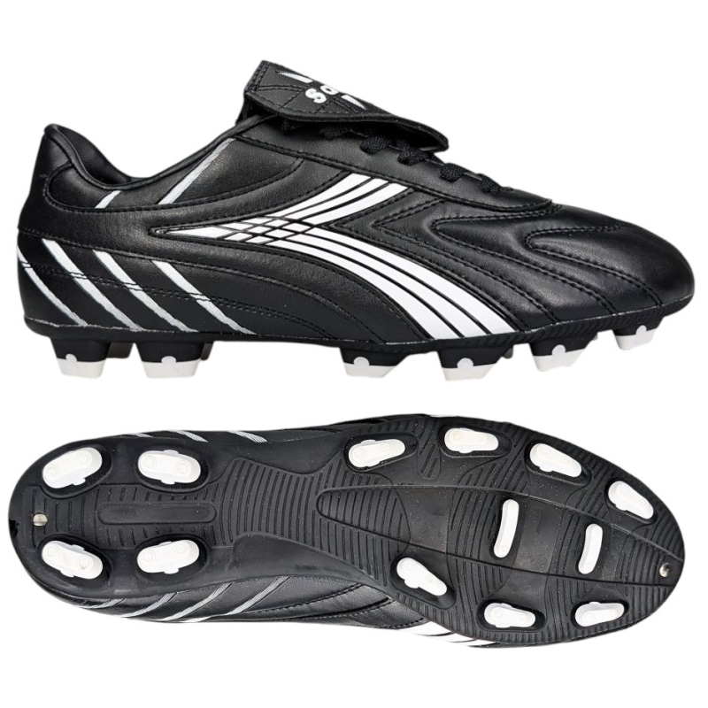 Te klasyczne czarne korki piłkarskie to kwintesencja sportowej elegancji i funkcjonalności. Ich dynamiczna sylwetka, ozdobiona kultowymi, białymi paskami po bokach, nie tylko przyciąga wzrok, ale też podkreśla szybkość i precyzję na boisku. Wykonane z solidnego materiału, idealnie dopasowują się do stopy, oferując doskonałe czucie piłki, które jest kluczowe dla każdego, kto marzy o strzelaniu goli.