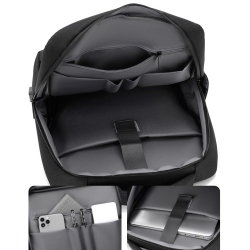 Wyposażony jest w wielofunkcyjne przegródki, w tym dedykowane miejsce na laptopa, tablet oraz inne przegrody na akcesoria jak butelka wody, długopisy i telefon.