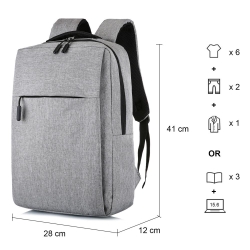 Plecak pomieścić może na przykład 6 koszulek, 2 pary spodni i 1 marynarkę lub alternatywnie 3 książki i laptop.