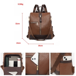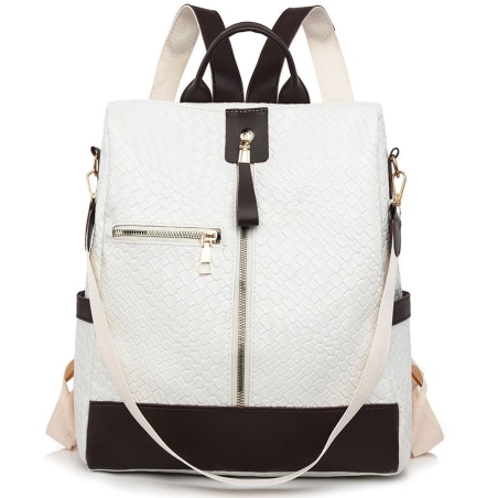 Ten stylowy plecak damski, wykonany ze skóry ekologicznej, łączy w sobie elegancję i funkcjonalność. Materiał ma charakterystyczną, tłoczoną fakturę przypominającą plecionkę.