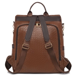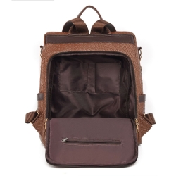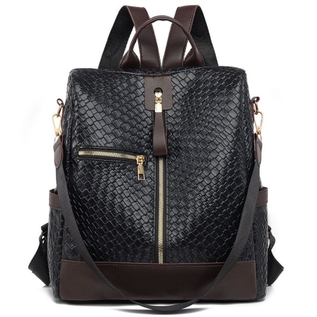 Ten stylowy plecak damski, wykonany ze skóry ekologicznej, łączy w sobie elegancję i funkcjonalność. Materiał ma charakterystyczną, tłoczoną fakturę przypominającą plecionkę.