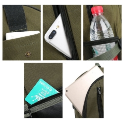 kieszenie zamykane na klapy z klamrami, które idealnie nadają się na drobne akcesoria. Po bokach umieszczono otwarte kieszenie siatkowe, idealne na butelkę z wodą.