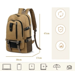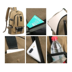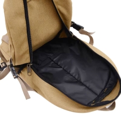 Plecak wykonany jest z grubego, odpornego na zużycie płótna, które jest łatwe w czyszczeniu i odporne na wilgoć, co chroni zawartość w deszczowe dni.