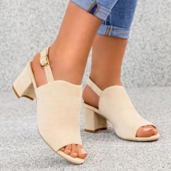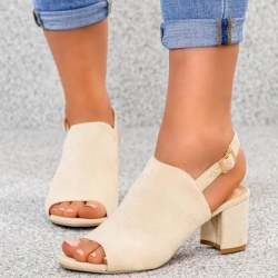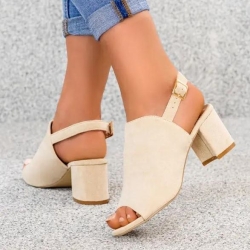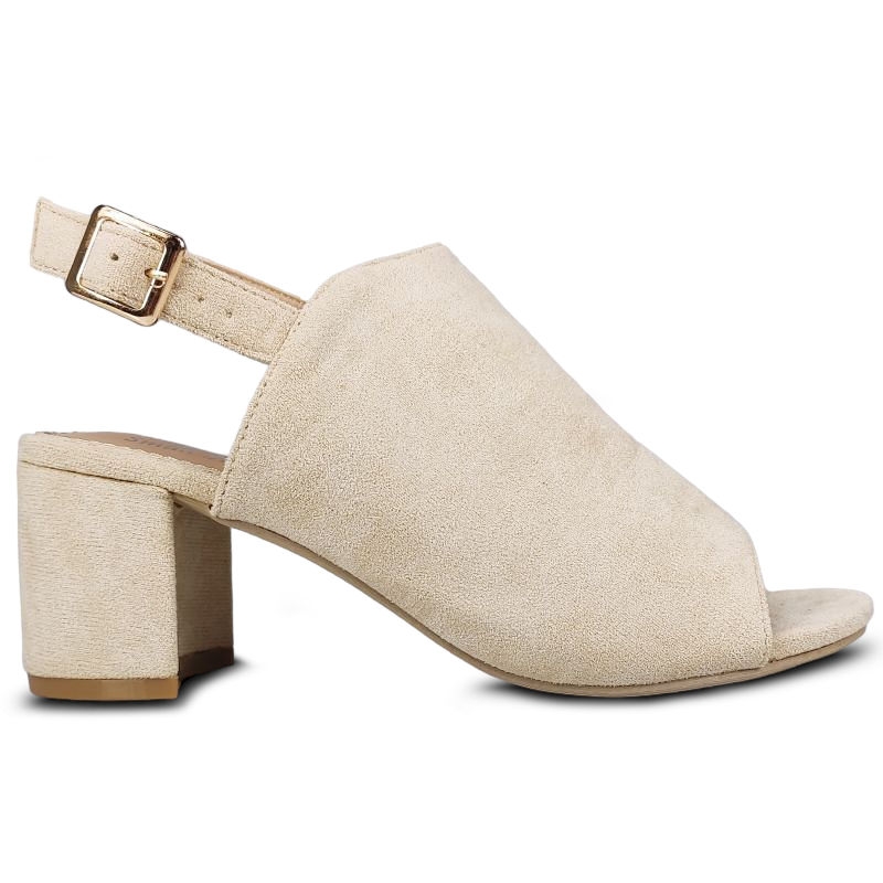 Sandały Damskie Na Obcasie Miros Zamszowe Beżowe