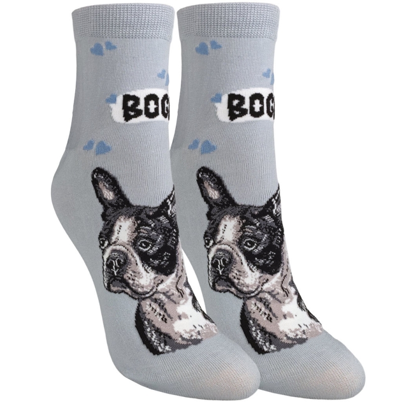 Skarpetki Damskie Szaro Niebieskie z Psem Dogs Buldog Francuski