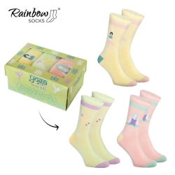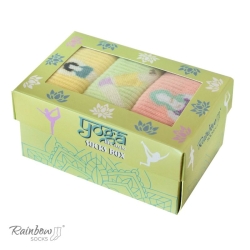 Skarpetki Rainbow Socks Yoga Box to harmonijny zestaw zaprojektowany dla miłośników jogi i relaksu, którzy cenią sobie komfort i styl. Ten subtelny zestaw zawiera trzy pary skarpetek w pastelowych kolorach, każda z unikalnym wzorem inspirowanym różnymi pozycjami jogi. Skarpetki emanują spokojem i są doskonałym dodatkiem, który wprowadzi Cię w stan wyciszenia, idealny do medytacji i codziennych rytuałów relaksacyjnych.