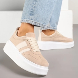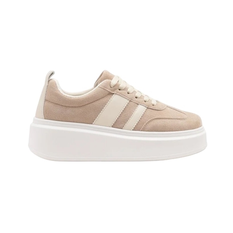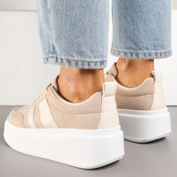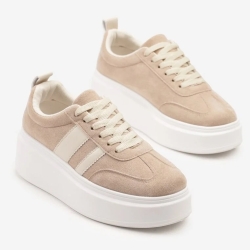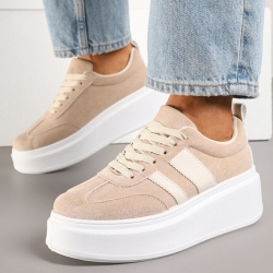 Wykonane z miękkiego ekozamszu, prezentują się bardzo stylowo, a zarazem subtelnie. Jasny, beżowy odcień nadaje im uniwersalny charakter, dzięki czemu doskonale sprawdzą się w wielu stylizacjach – zarówno tych casualowych, jak i bardziej kobiecych. Zaokrąglony nosek i starannie wyprofilowane linie cholewki dodają całości lekkości i nowoczesnej elegancji.