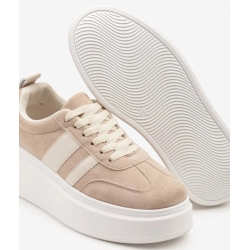 Sneakersy posiadają sznurowane zapięcie, które nie tylko pozwala idealnie dopasować but do stopy, ale także stanowi klasyczny, sportowy akcent. Co więcej, w zestawie znajdują się dwie pary kolorowych sznurowadeł – białe oraz beżowe – które możesz wymieniać w zależności od stylizacji czy nastroju.