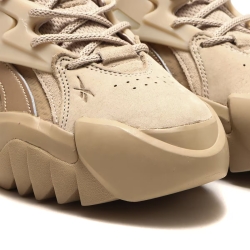 Model Reebok ClubC Cardi V2 GW6697 to perfekcyjne połączenie klasyki z futurystycznym akcentem. Intensywny beżowy kolor dominuje na cholewce, tworząc hipnotyzujące tło dla masywnej, przezroczystej podeszwy. To właśnie ona dodaje butom awangardowego charakteru, jednocześnie zapewniając niezrównany komfort i amortyzację.