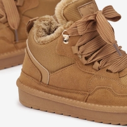Zapomnij o nudnych zimowych butach! |Buty wyróżnia się oryginalnymi, szerokimi sznurówkami, które są nie tylko praktycznym elementem, ale prawdziwą deklaracją stylu. To ten detal, który przyciąga wzrok i nadaje butom sportowej elegancji z nutą indywidualizmu.