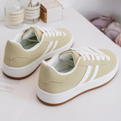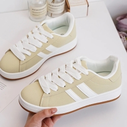 Cholewka została wykonana z przyjemnej w dotyku eko-zamszu, co nadaje butom eleganckiego, a zarazem swobodnego charakteru. Materiał jest trwały i łatwy w pielęgnacji. Podeszwa to połączenie lekkiej pianki i elastycznej gumy, co gwarantuje doskonałą amortyzację i przyczepność na każdej nawierzchni. Bez względu na to, czy planujesz długi spacer, czy intensywny dzień, te trampki zapewnią Ci pełen komfort.