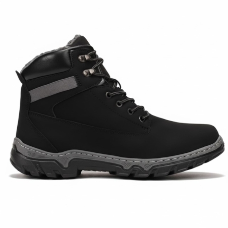 Buty posiadają klasyczny, okrągły nosek i są wykonane z imitacji skóry w odcieniu, który podkreśla ich ponadczasowy design. Wyposażone w sznurowanie oraz dodatkowy zamek błyskawiczny, zapewniają łatwe zakładanie i idealne dopasowanie. Doskonałe wykonanie i uniwersalny styl sprawiają, że będą świetnym dodatkiem do każdej zimowej stylizacji.
